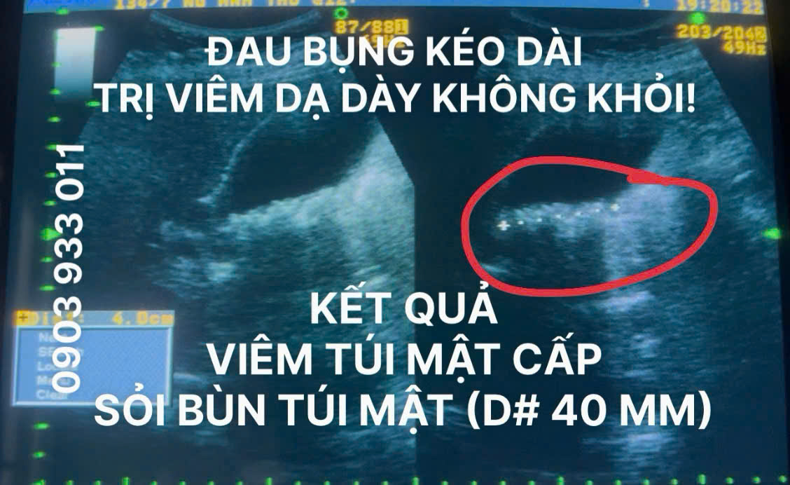 Qua thăm khám lâm sàng và siêu âm ổ bụng, bác sĩ phát hiện anh mắc viêm túi mật cấp, kèm sỏi bùn túi mật và trào ngược dạ dày. Theo phân tích chuyên môn, viêm túi mật cấp do sỏi mật có thể gây đau vùng hạ sườn phải, đau lan lên vai phải hoặc ra sau lưng, kèm sốt nhẹ, ớn lạnh và rối loạn tiêu hóa. Triệu chứng đôi khi dễ nhầm lẫn với bệnh lý dạ dày, dẫn đến điều trị chưa đúng nguyên nhân.