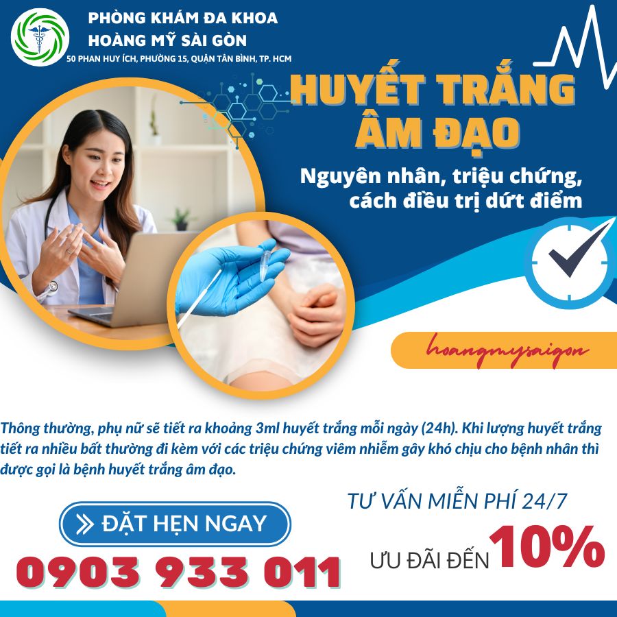 Phòng Khám Đa Khoa Hoàng Mỹ Sài Gòn là một địa chỉ uy tín, chất lượng với đội ngũ y bác sĩ giỏi, giàu kinh nghiệm mà bạn có thể tin tưởng, lựa chọn đến thăm khám và điều trị bệnh huyết trắng âm đạo. Tại đây: