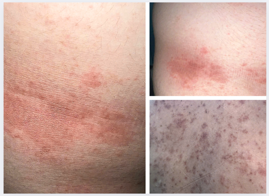 Sau khi trở lại Sài Gòn, anh bắt đầu cảm thấy cơ thể không khỏe, khó chịu, ngứa ngáy toàn thân. Tiếp theo đó là xuất hiện mẩn đỏ khắp người, đặc biệt ở mặt, cổ, lưng, đùi, quanh bẹn. Triệu chứng ngứa lúc này rất dữ dội, rát, buộc bệnh nhân gãi nhiều đến rách da.
