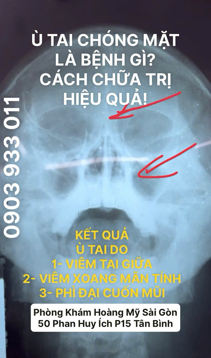 Sau khi tham khảo đánh giá trên Google Maps, anh đặt lịch khám tại Phòng khám Hoàng Mỹ Sài Gòn. Kết quả thăm khám tổng quát cho thấy anh mắc đồng thời ba bệnh lý: viêm tai giữa, viêm xoang mãn tính và phì đại cuốn mũi. Đây là các bệnh lý có mối liên hệ chặt chẽ. Viêm xoang mạn tính và phì đại cuốn mũi gây cản trở lưu thông không khí, ảnh hưởng đến vòi nhĩ, từ đó dẫn đến viêm tai giữa và gây ra các triệu chứng ù tai, chóng mặt, nhức đầu.