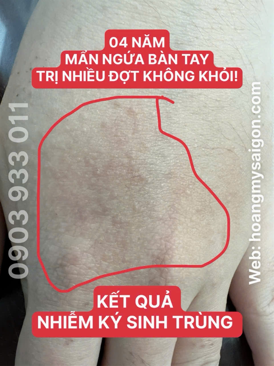 Theo chia sẻ, trong suốt 4 năm, chị chỉ xuất hiện ngứa ở hai bàn tay, kèm nổi mẩn đỏ, sẩn da. Mỗi lần khám và dùng thuốc uống, thuốc bôi, triệu chứng có giảm. Tuy nhiên, sau khi ngưng thuốc một thời gian, tình trạng lại tái phát như cũ. Việc điều trị chủ yếu tập trung vào kiểm soát triệu chứng ngoài da nhưng không giải quyết được nguyên nhân gốc rễ.