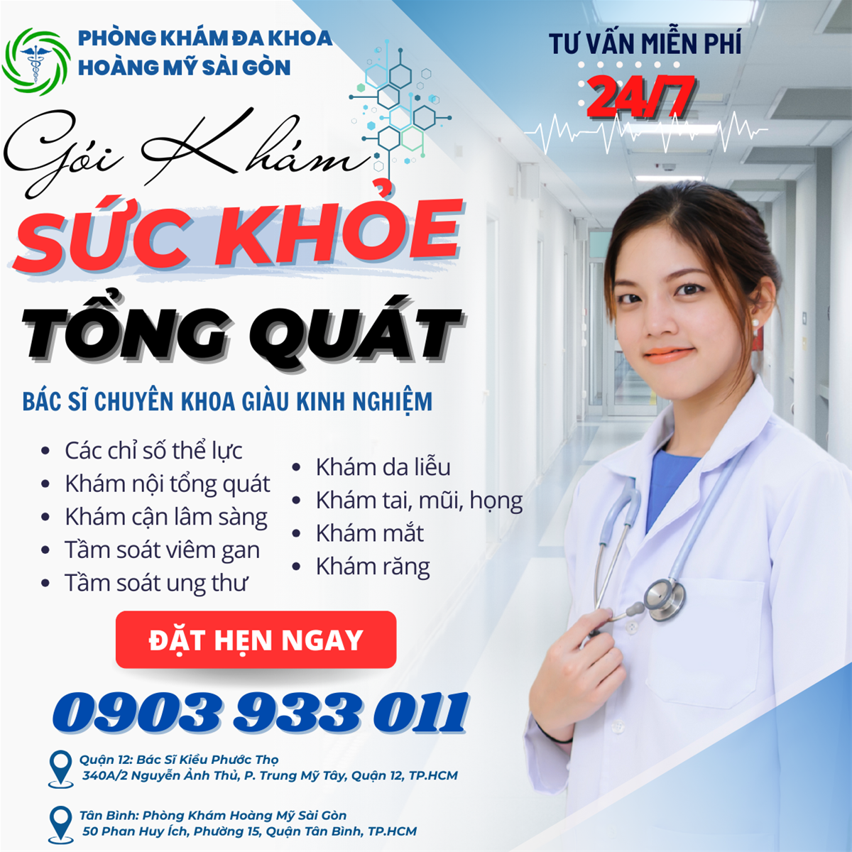 Phòng Khám Đa Khoa Hoàng Mỹ Sài Gòn là một đơn vị uy tín, chất lượng tại Hồ Chí Minh mà bạn có thể lựa chọn để thăm khám sức khỏe tổng quát định kỳ. Với nhiều năm kinh nghiệm, chúng tôi tự tin đem đến cho những khách hàng đến thăm khám dịch vụ đáng để lựa chọn nhất.