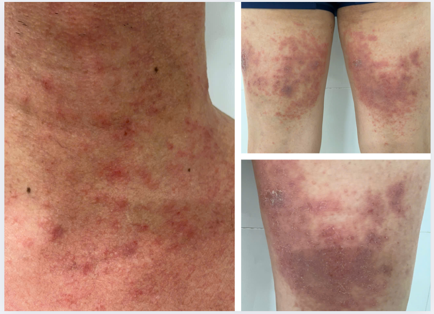 Khoảng 09 tháng gần đây, anh Trung cảm thấy ngứa da đầu, nổi đám đỏ sẩn ngứa vùng trán, ngứa toàn thân, mẩn đỏ từng đám, đặc biệt ngứa nhiều sau khi tắm hoặc gãi.